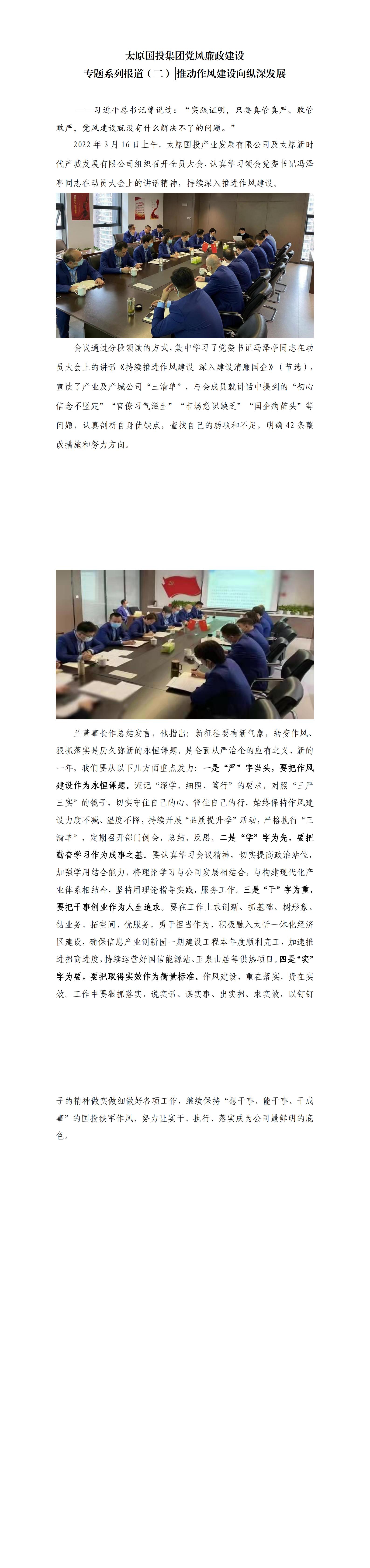 太原國投集團黨風廉政建設專題系列報道(二)推動作風建設向縱深發展