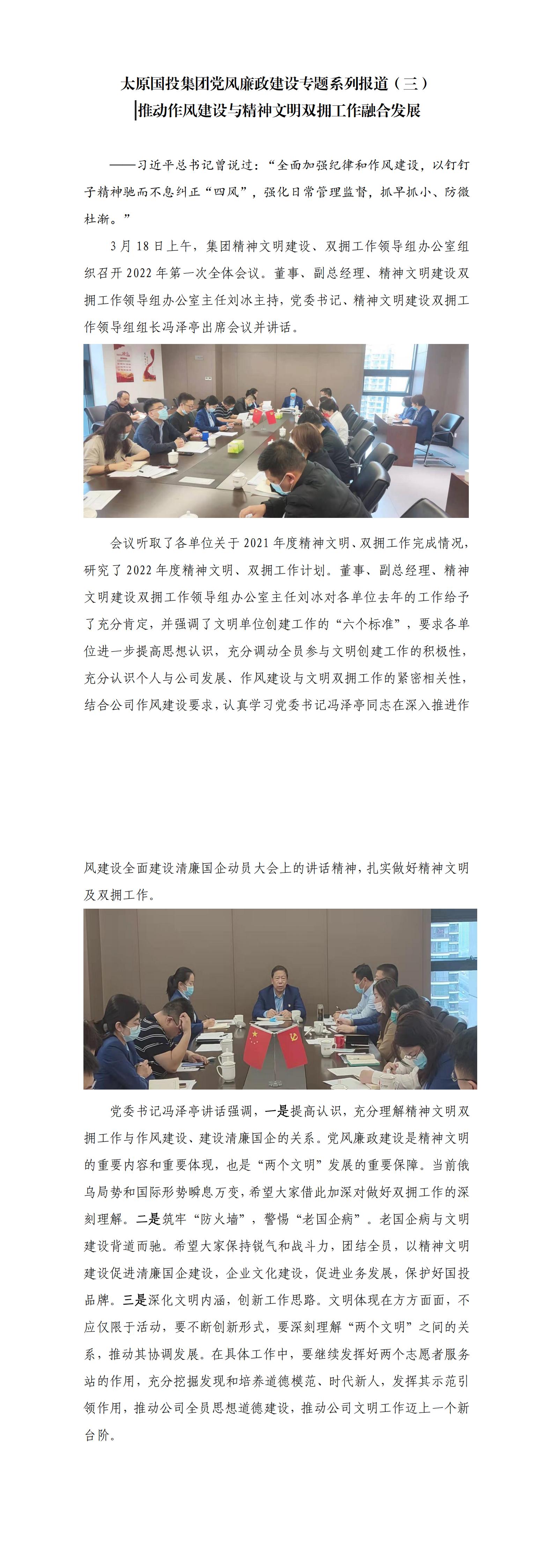 太原國投集團黨風廉政建設專題系列報道(三)推動作風建設與精神文明雙擁工作融合發展