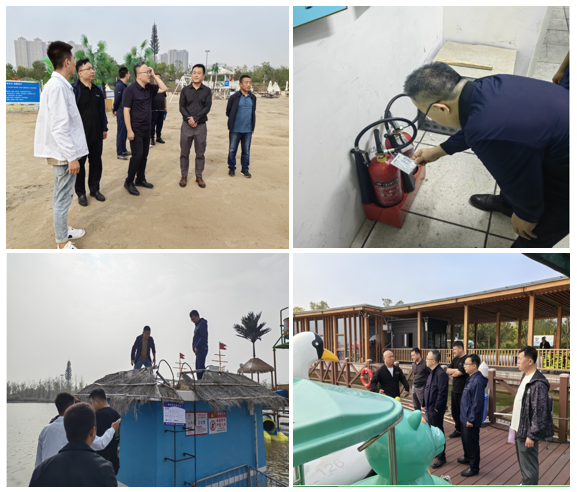 城運公司檢查組一行先后前往晉陽湖帳篷營地施工現場、沙灘浴場、2號碼頭、5號碼頭、晉陽里、晉陽湖劇場等重點項目進行檢查工作。此次檢查重點針對水上安全、防汛備汛、有限空間作業、用電安全、安全設施設備等情況進行了專項檢查,并強調做好節假日應急處理。