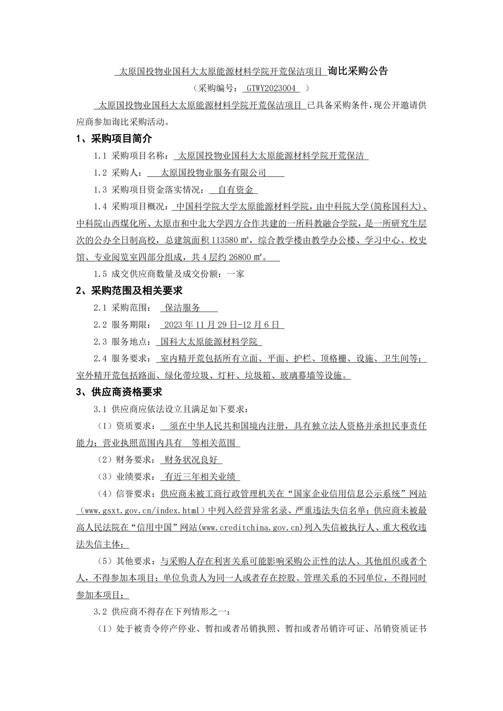 太原國(guó)投物業(yè)國(guó)科大太原能源材料學(xué)院開(kāi)荒保潔項(xiàng)目詢(xún)比采購(gòu)公告
