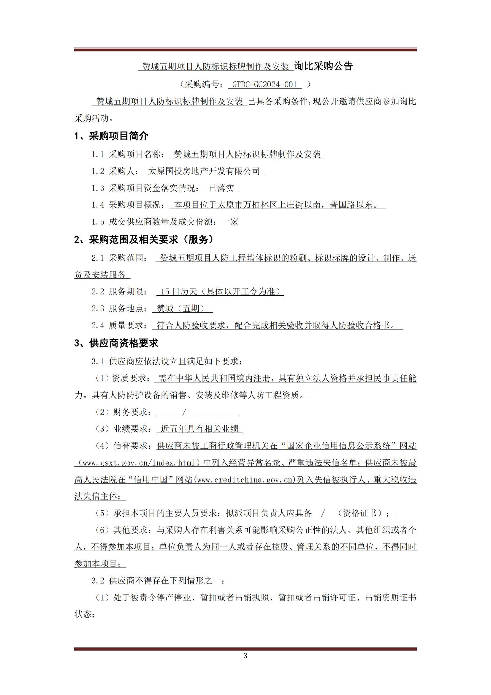 贊城五期項目人防標(biāo)識標(biāo)牌制作及安裝詢比采購公告